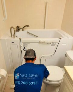 Next Level Shower & Bath installs premium walk‑in tubs tailored for seniors who need safer access and increased comfort. We fit each tub with a low‑threshold entry, textured non‑slip flooring, built‑in seating, and professionally placed grab bars.